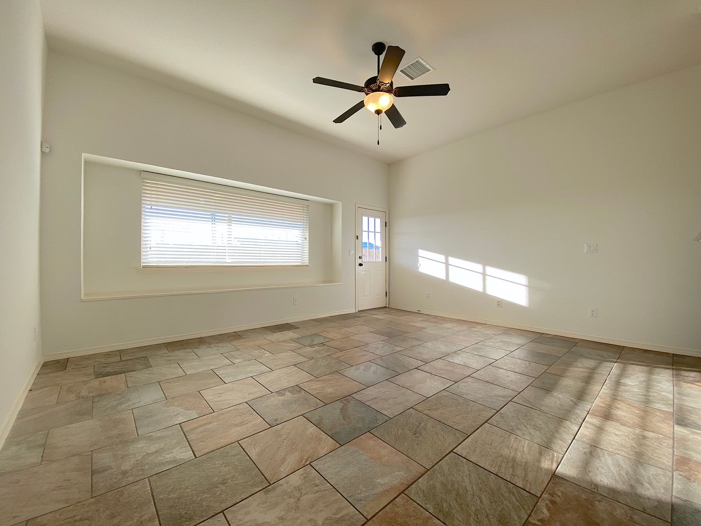 East El Paso Beauty! 4 bed, 2 bath single story with REFRIG A/C! with solar panels to lower those energy costs. Living room, family room, large eat-in kitchen with breakfast bar, pantry, lots of cabinet/counter space and stainless steel major kitchen appliances included. Spacious master bedroom with walk in closet and dual sink bathroom with garden tub/shower. Low maintenance landscaping in the backyard. Home is conveniently located close to schools, dining, parks and easy access to Ft. Bliss. Residents are enrolled in the Resident Benefits Package (RBP) which includes liability insurance, credit building to help boost the resident’s credit score with timely rent payments, up to $1M Identity Theft Protection, HVAC air filter delivery (for applicable properties), move-in concierge service making utility connection and home service setup a breeze during your move-in, our best-in-class resident rewards program, and much more!