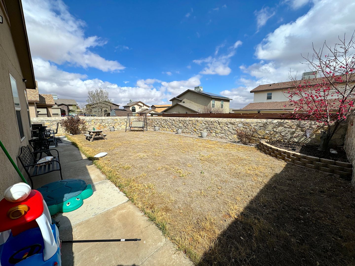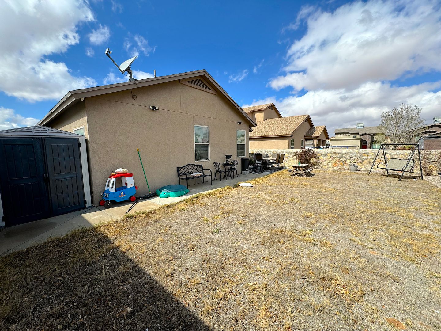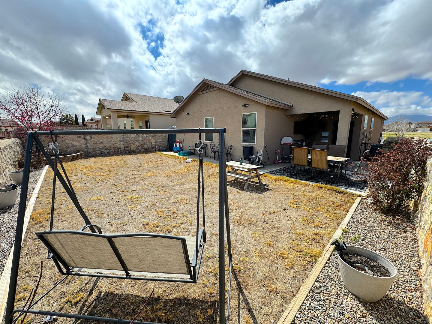 Gorgeous Northeast El Paso 3bed/2bath REFRIG A/C home and directly across the street from a large park. Spacious open living areas. The kitchen overlooks the living and dining areas and delights with granite counters, breakfast bar, pantry and stainless steel appliances. Walk out to the backyard perfect for entertaining with covered patio with tv mount and built in bluetooth speakers. Home is conveniently located close to schools, dining and quick access to Ft. Bliss. Residents are enrolled in the Resident Benefits Package (RBP) which includes liability insurance, credit building to help boost the resident’s credit score with timely rent payments, up to $1M Identity Theft Protection, HVAC air filter delivery (for applicable properties), move-in concierge service making utility connection and home service setup a breeze during your move-in, our best-in-class resident rewards program, and much more!