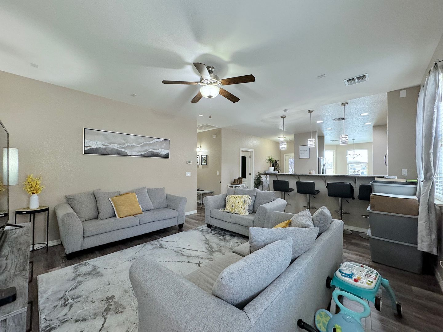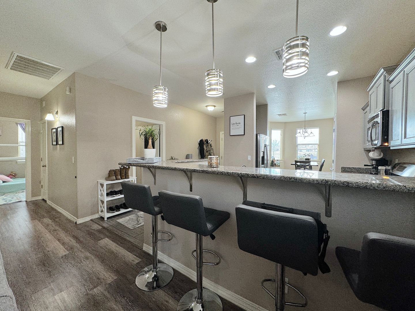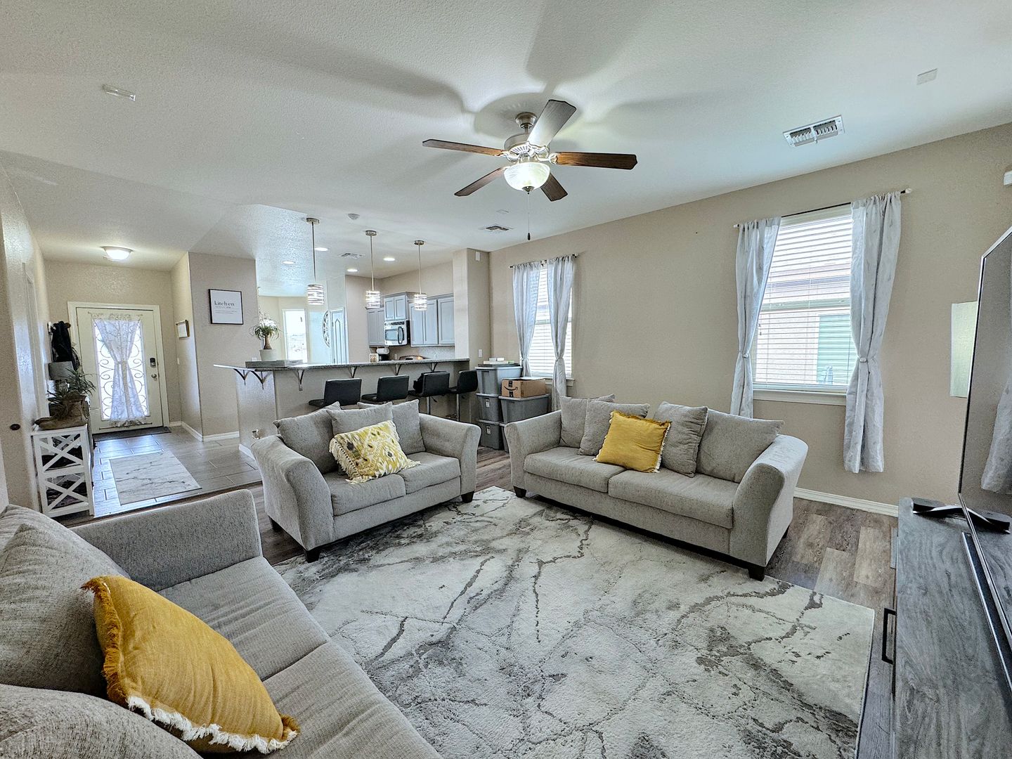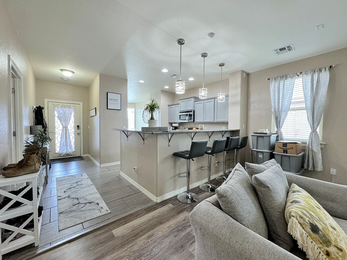 Gorgeous Northeast El Paso 3bed/2bath REFRIG A/C home and directly across the street from a large park. Spacious open living areas. The kitchen overlooks the living and dining areas and delights with granite counters, breakfast bar, pantry and stainless steel appliances. Walk out to the backyard perfect for entertaining with covered patio with tv mount and built in bluetooth speakers. Home is conveniently located close to schools, dining and quick access to Ft. Bliss. Residents are enrolled in the Resident Benefits Package (RBP) which includes liability insurance, credit building to help boost the resident’s credit score with timely rent payments, up to $1M Identity Theft Protection, HVAC air filter delivery (for applicable properties), move-in concierge service making utility connection and home service setup a breeze during your move-in, our best-in-class resident rewards program, and much more!