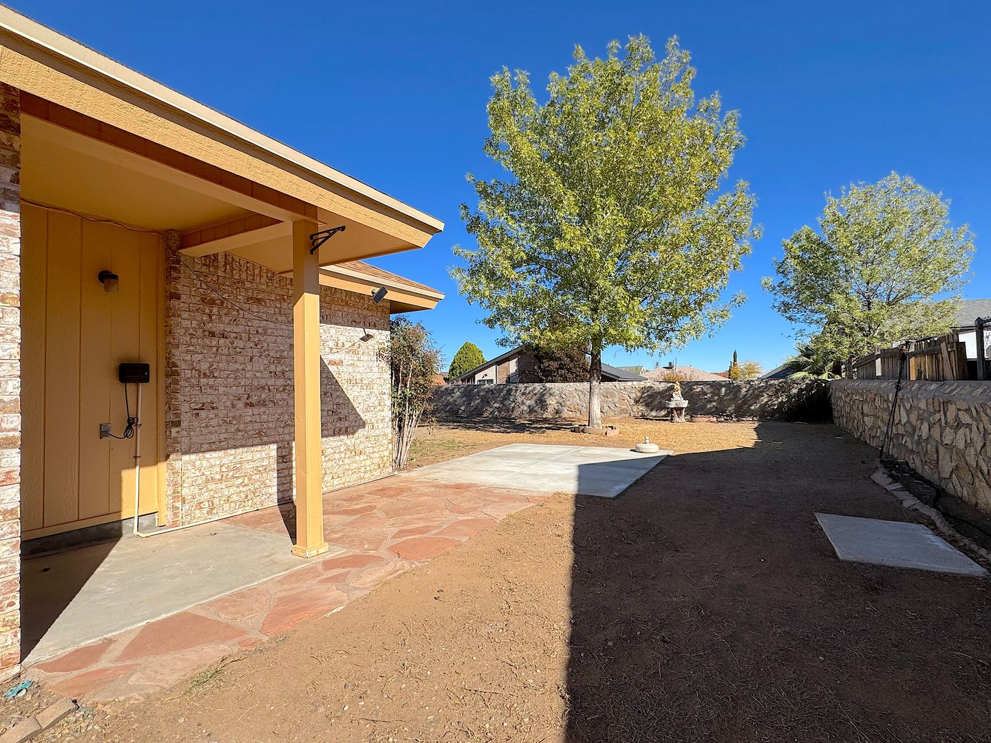 Beautiful 3 bedroom, 2 bath with open floor plan. The living room features a cozy fireplace and vaulted ceilings and flows into the breakfast area and kitchen with a convenient breakfast bar. Large master suite with walk in closet. Out back has a covered patio and plenty of room for the next backyard get-together. Located close to schools, parks and quick access to Ft. Bliss. Residents are enrolled in the Resident Benefits Package (RBP) which includes liability insurance, credit building to help boost the resident’s credit score with timely rent payments, up to $1M Identity Theft Protection, HVAC air filter delivery (for applicable properties), move-in concierge service making utility connection and home service setup a breeze during your move-in, our best-in-class resident rewards program, and much more!
