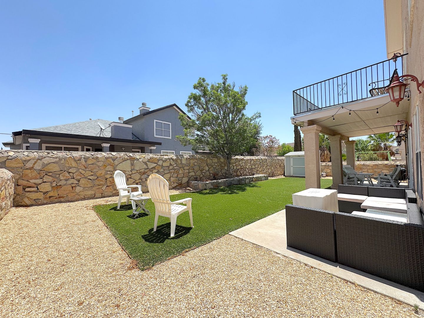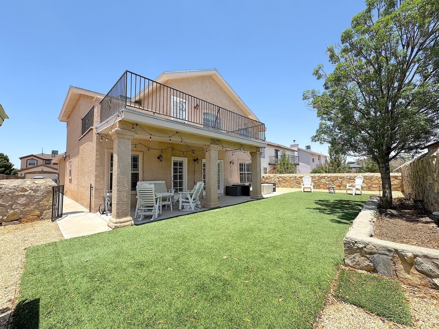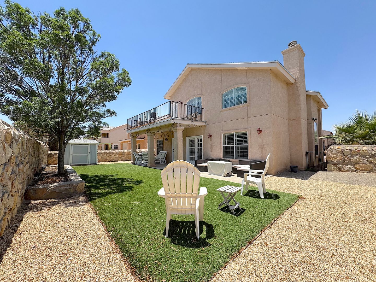 Gorgeous 2 story 3 bed/2.5 bath East El Paso home with refrig a/c. Spacious living areas bathed in natural lighting. Large downstairs master suite. Bonus upstairs loft which can be used as office, gym or play area and has access to the balcony overlooking the backyard. Low maintenance backyard with covered patio, synthetic grass and storage shed. Home is conveniently located within walking distance of schools, parks and easy access to Ft. Bliss. Residents are enrolled in the Resident Benefits Package (RBP) which includes liability insurance, credit building to help boost the resident’s credit score with timely rent payments, up to $1M Identity Theft Protection, HVAC air filter delivery (for applicable properties), move-in concierge service making utility connection and home service setup a breeze during your move-in, our best-in-class resident rewards program, and much more!