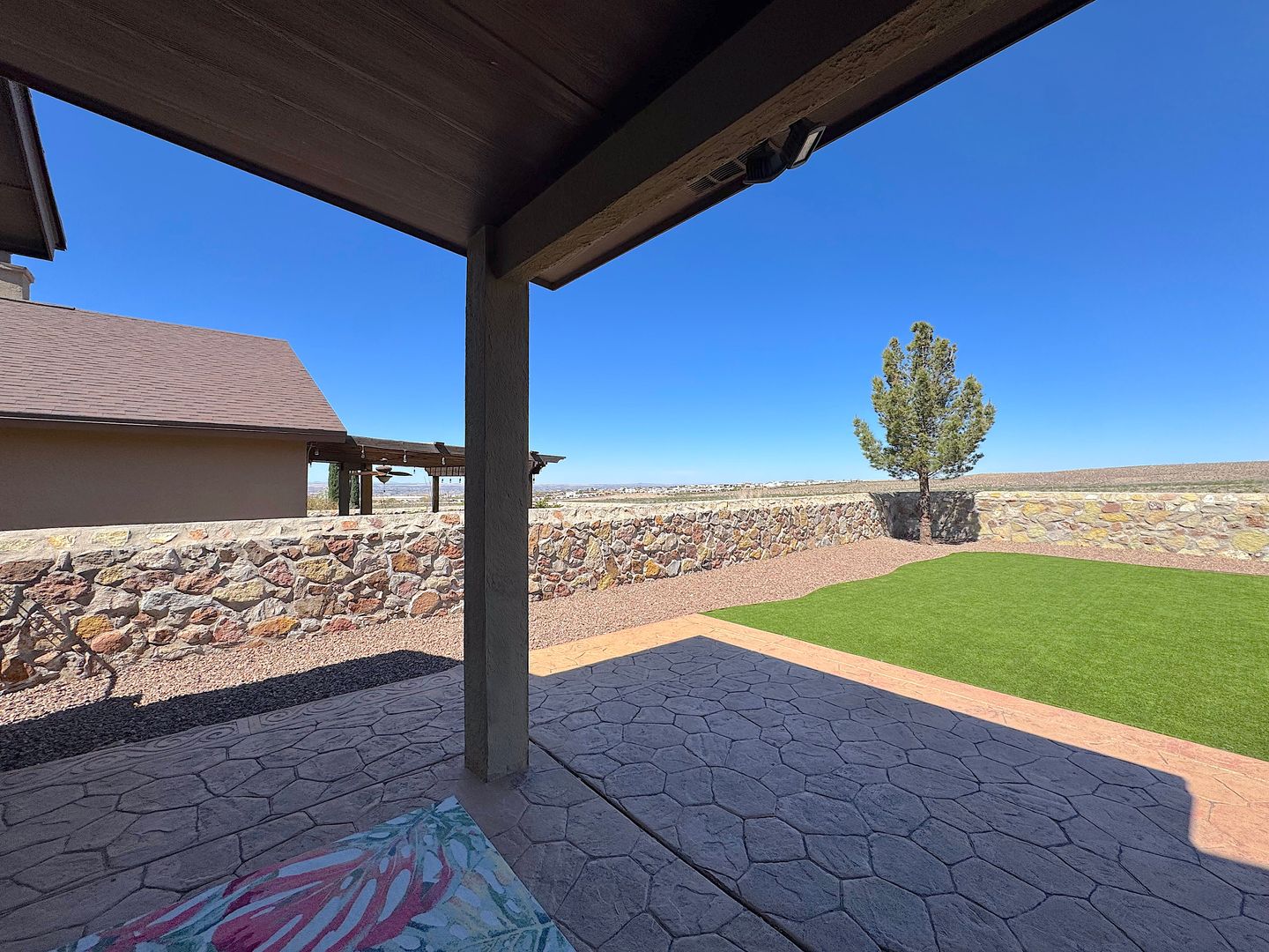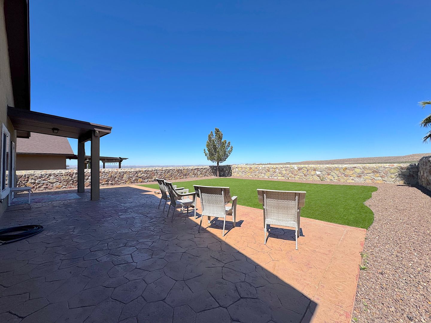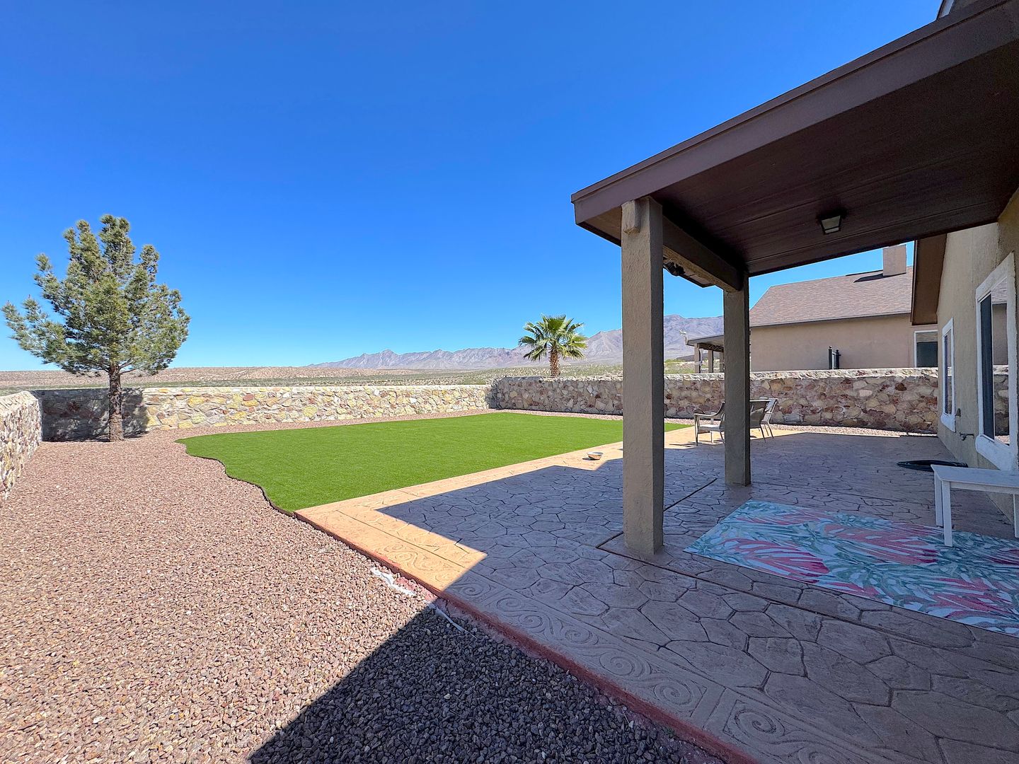 Gorgeous 2 story 3 bed, 2.5 bath REFRIG A/C home located in the Cimarron Neighborhood in West El Paso. Enjoy breathtaking views and its close proximity to mountain bike trails, hiking trails, parks and schools. Bonus room/office by the entry. Large open living areas and spacious kitchen with island, granite counters and pantry. Enjoy the low maintenance back yard with stamped concrete deck, covered patio and synthetic grass yard. Residents are enrolled in the Resident Benefits Package (RBP) which includes liability insurance, credit building to help boost the resident’s credit score with timely rent payments, up to $1M Identity Theft Protection, HVAC air filter delivery (for applicable properties), move-in concierge service making utility connection and home service setup a breeze during your move-in, our best-in-class resident rewards program, and much more!