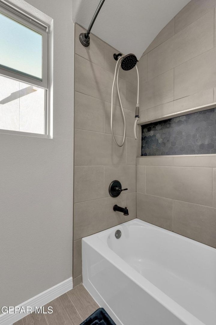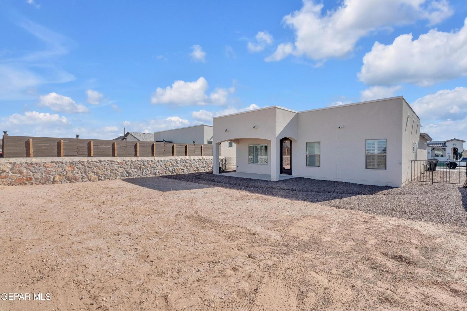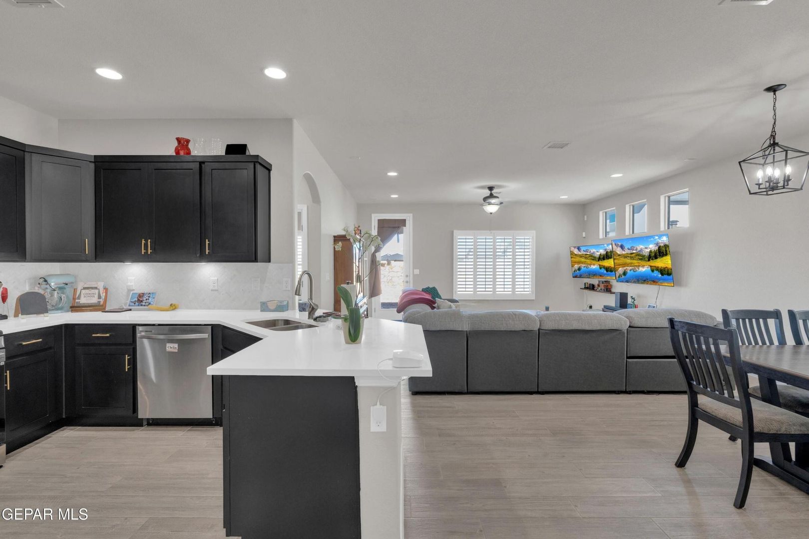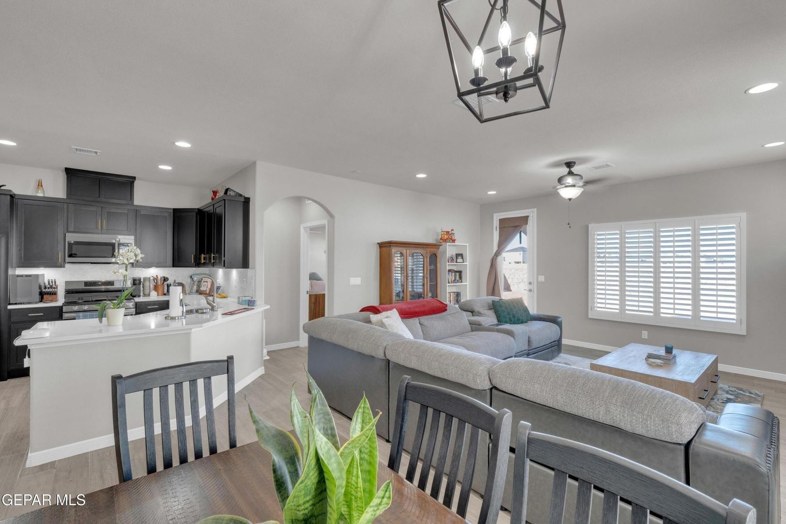 Striking modern home located in the new Summer Sky subdivision. Open floor plan creates an effortless flow into a spacious living area filled with natural light and accented by plantation shutters throughout. The kitchen impresses with abundant cabinetry, quality appliances, and a comfortable dining space. Three well-appointed bedrooms and two baths include a generously sized primary suite featuring a walk-in closet, double vanity sinks, a relaxing garden tub, and a separate shower.