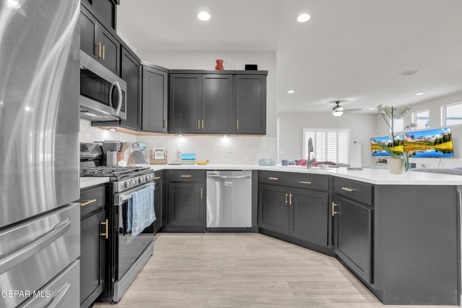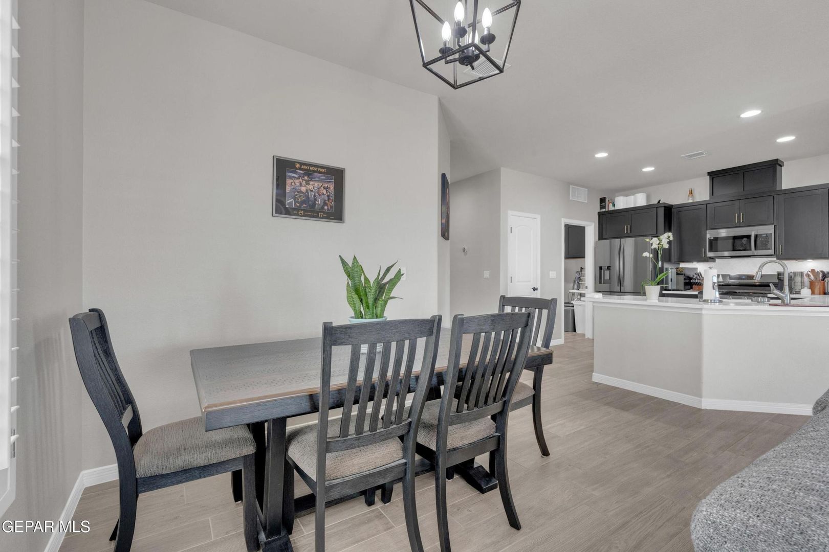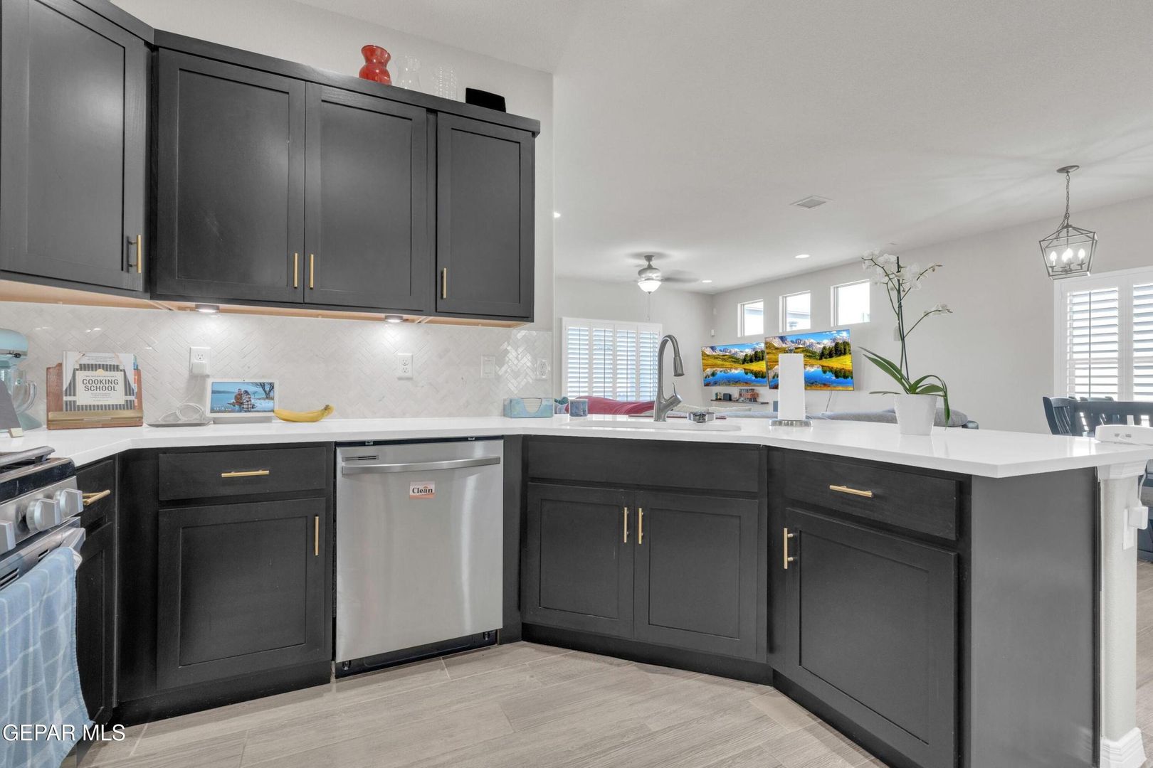 Striking modern home located in the new Summer Sky subdivision. Open floor plan creates an effortless flow into a spacious living area filled with natural light and accented by plantation shutters throughout. The kitchen impresses with abundant cabinetry, quality appliances, and a comfortable dining space. Three well-appointed bedrooms and two baths include a generously sized primary suite featuring a walk-in closet, double vanity sinks, a relaxing garden tub, and a separate shower.