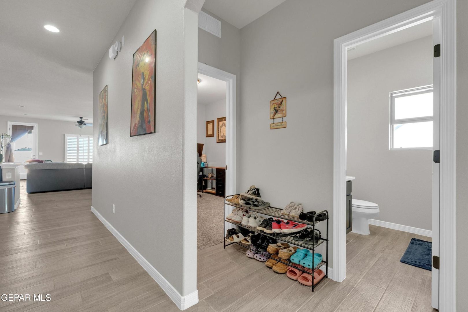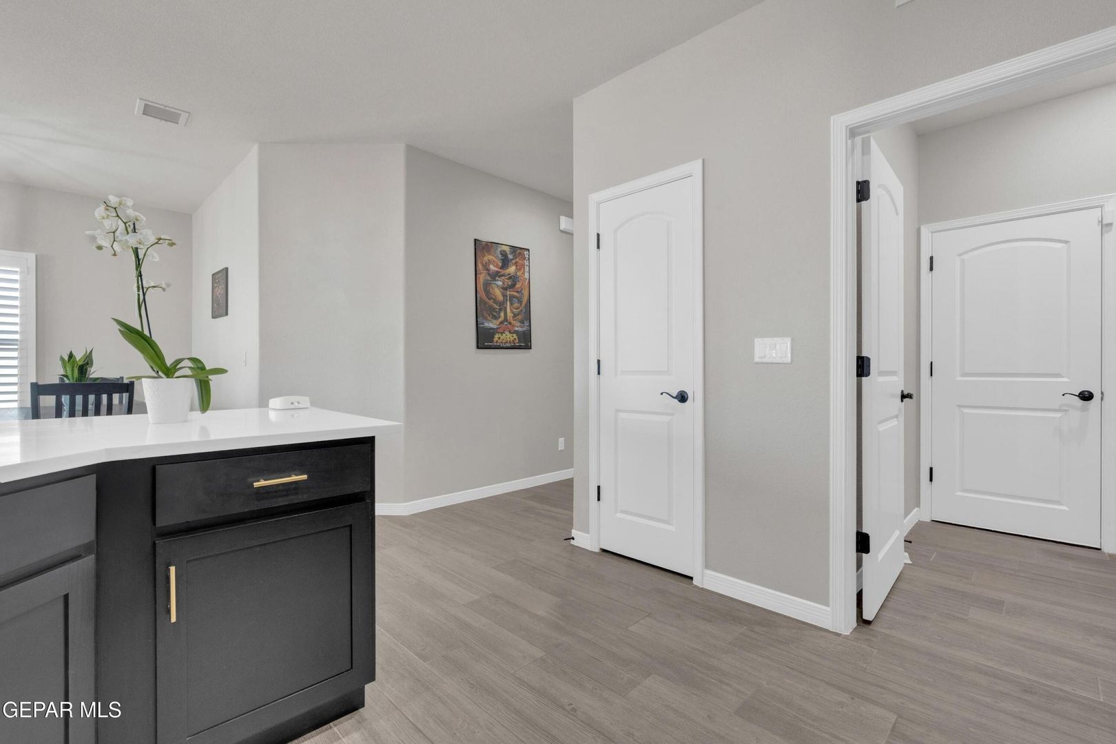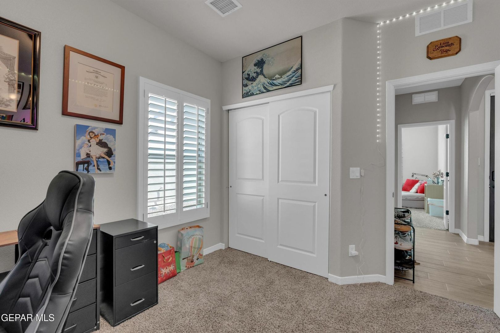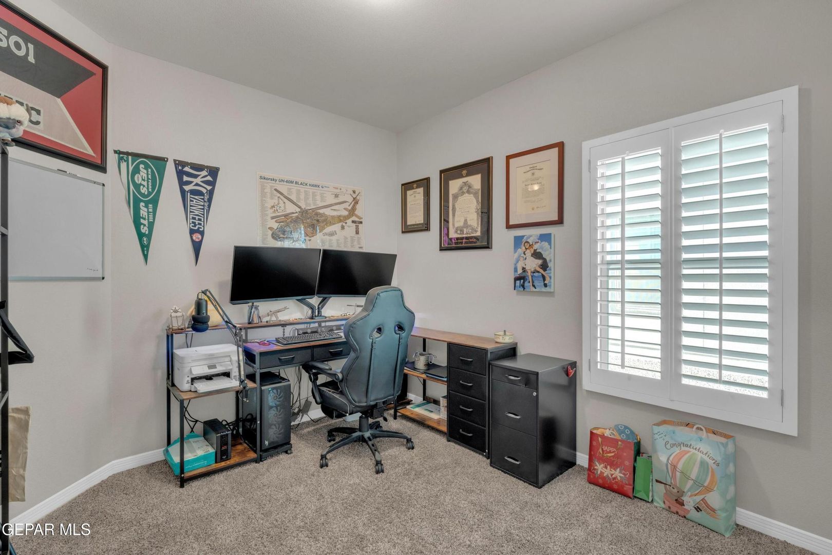 Striking modern home located in the new Summer Sky subdivision. Open floor plan creates an effortless flow into a spacious living area filled with natural light and accented by plantation shutters throughout. The kitchen impresses with abundant cabinetry, quality appliances, and a comfortable dining space. Three well-appointed bedrooms and two baths include a generously sized primary suite featuring a walk-in closet, double vanity sinks, a relaxing garden tub, and a separate shower.